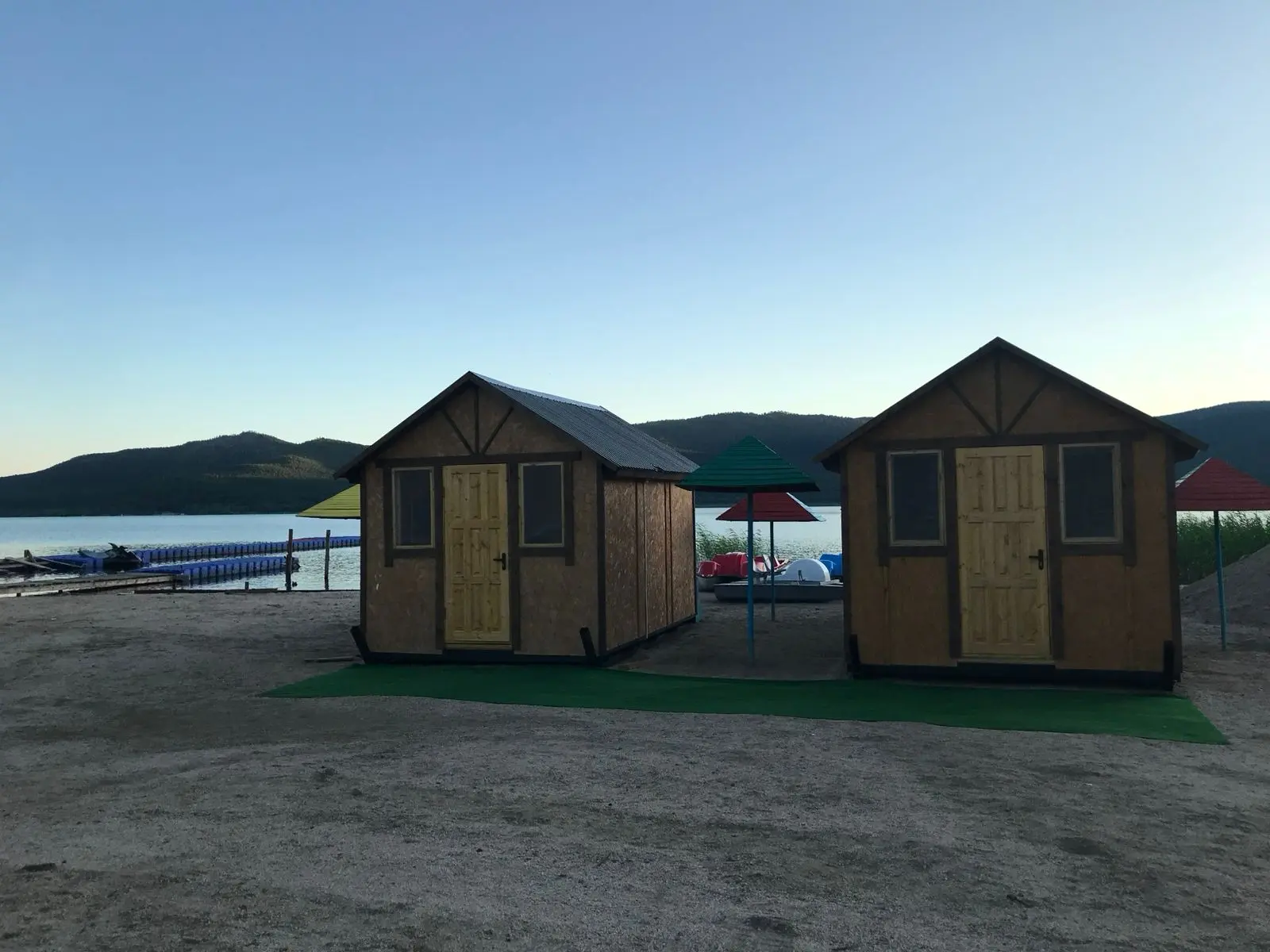 САНАТОРИЙ АЛМАЗ - ПЛЯЖНЫЕ ДОМИКИ - озеро Щучье. ПЛЯЖНЫЕ ДОМИКИ санатория расположены на самом берегу озера Щучье, на закрытой огороженной территории. В домиках односпальные или 2-х.спальные кровати, телевизор, холодильник. Оборудованные санузлы и душевые находятся на территории, рядом с домиками. На территории пляжа имеются катамараны, кафе, мороженое, самовар, мангал, беседки, лежаки, аквагорка. (все это пплачивается дополнительно по желанию).
