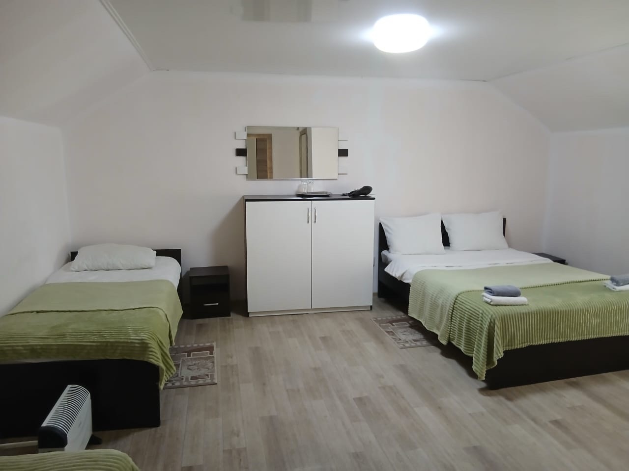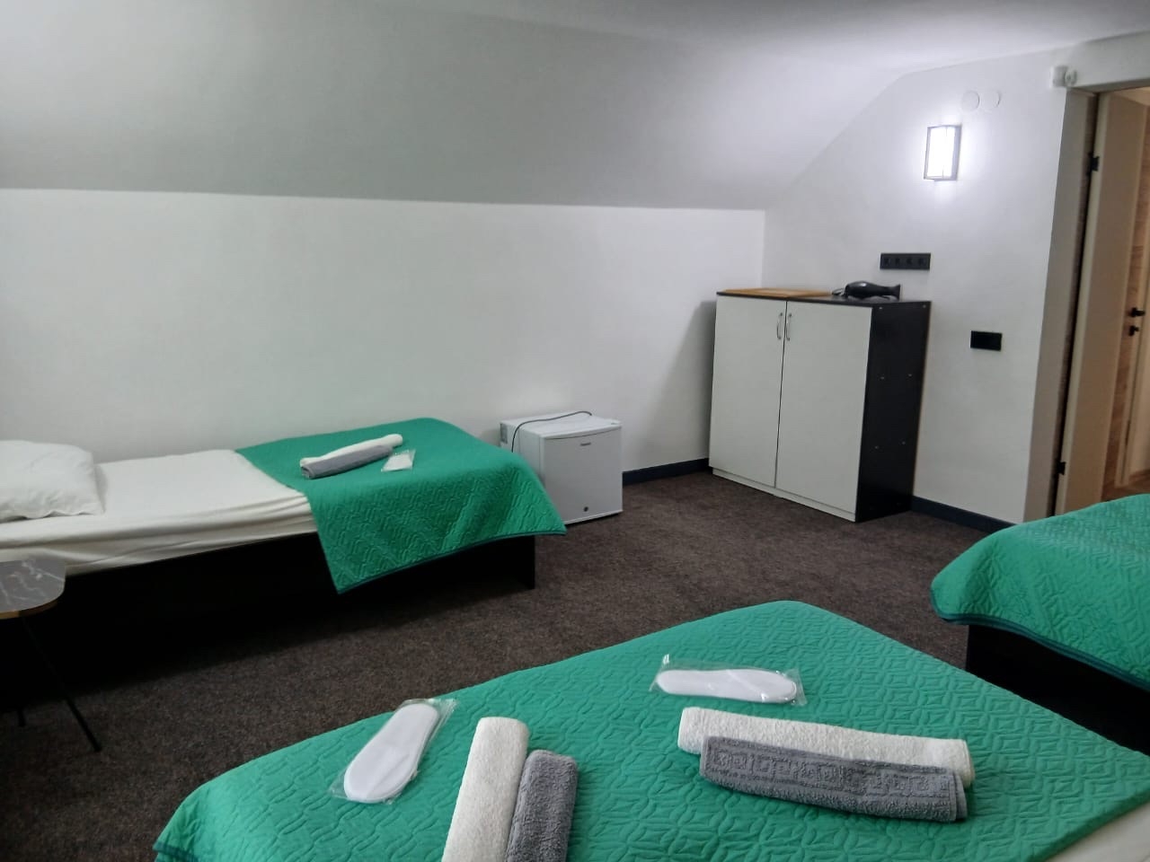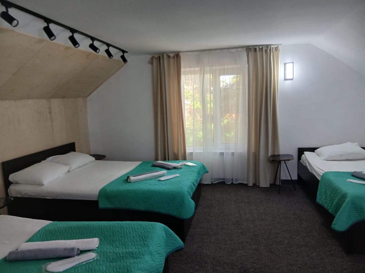 НОМЕРНОЙ ФОНД: Номера эконом: удобства в номере, 2 односпальные или одна 2-х.спальная кровать, ТВ. (без доп. мест). Стандарт и Стандарт плюс: Однокомнатный номер с одной 2-спальной или двумя 1-спальными кроватями, дополнительным спальным местом (раскладная кровать или диван), туалетной комнатой с душем. Полулюкс 2-х. комн.: 2 основных + 2 дополнительных. В номере 2-спальная или две 1-но спальные кровати, тумбочки, мягкий уголок, ТВ, WC, раковина, душевая кабина.